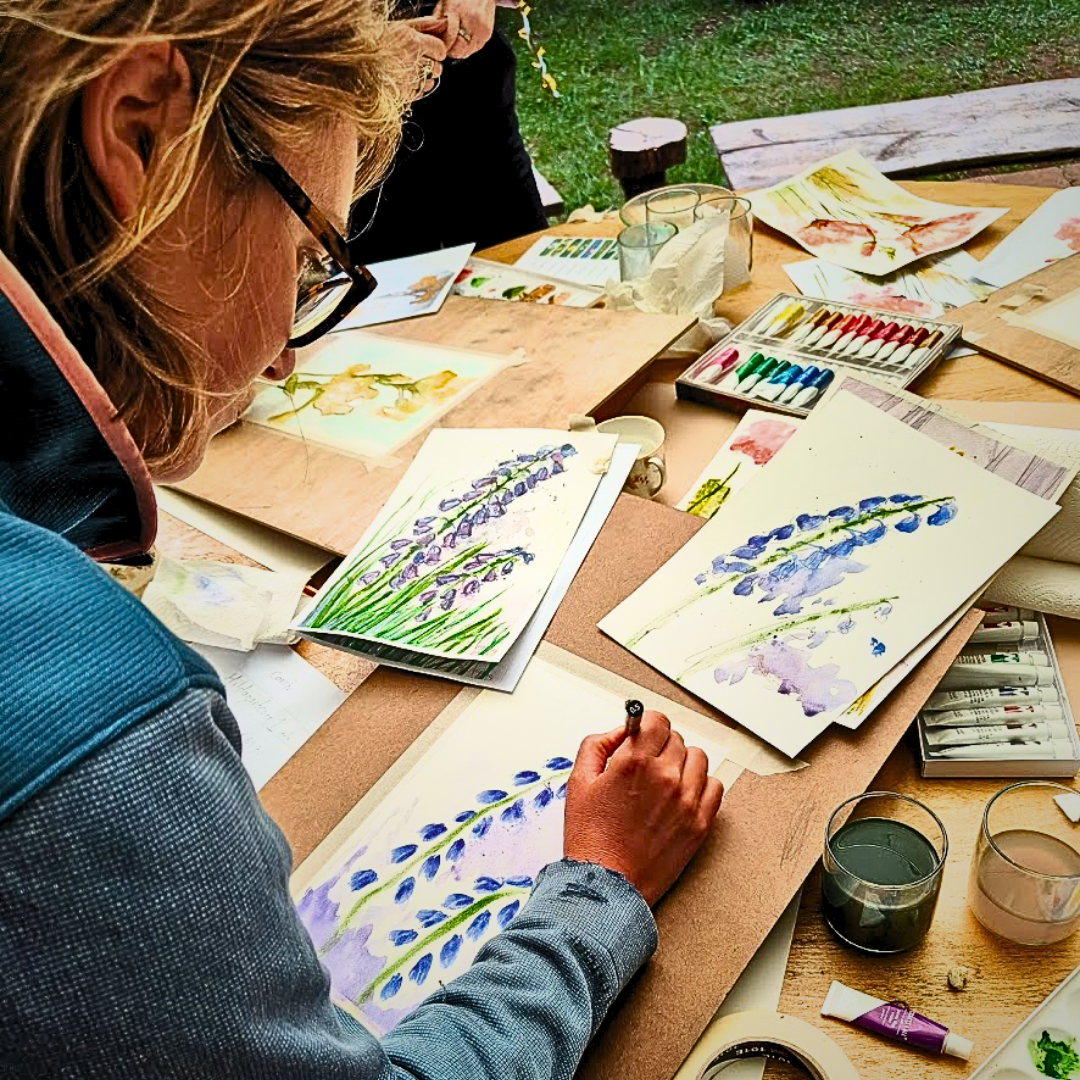 After walking the grounds finding inspiration from blooming wildflowers, guests settled in front of their canvas for some peaceful painting.